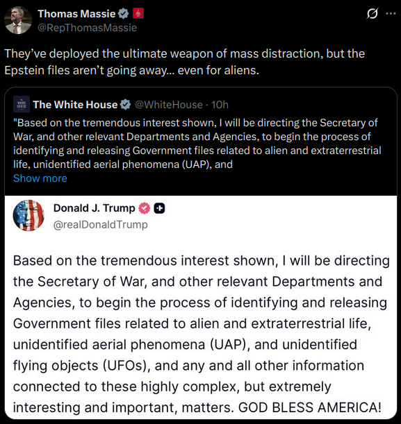 arrow-up179arrow-down1external-linkTrump deploys "weapon of mass distraction" - UFOsAltMediaGuyMA to AltMedia · 9 hours agomessage-square8linkfedilink