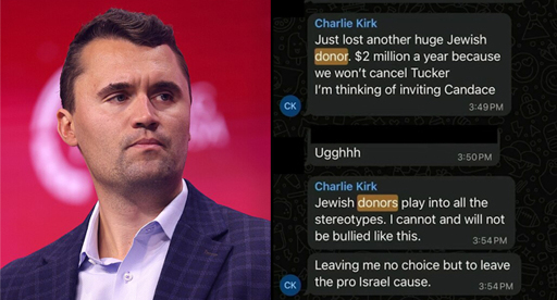 arrow-up194arrow-down1external-linkLeaked Texts Show Charlie Kirk Threatened to 'Leave the Pro-Israel Cause' Two Days Before His Murderwww.informationliberation.comAltMediaGuyMA to AltMedia · 7 days agomessage-square4linkfedilink