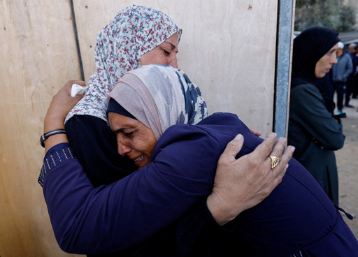 The video then pans to several Palestinians inside the cell, shackled and kneeling in a stress position with their backs to the camera.