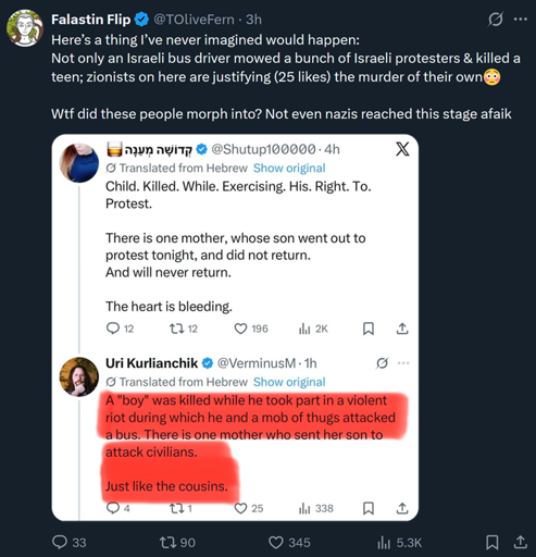 arrow-up143arrow-down1imageZionists have started treating Israelis like Palestinianslemmy.mlgeneva_convenience@lemmy.ml to Palestine@lemmy.dbzer0.comEnglish · 4 months agomessage-square14linkfedilink