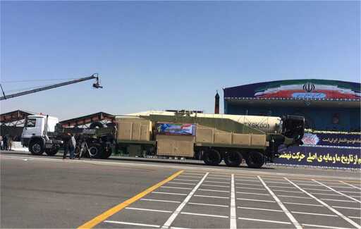 Image is of a Khorramshahr-4 medium range ballistic missile, which has a range of about 2000km.