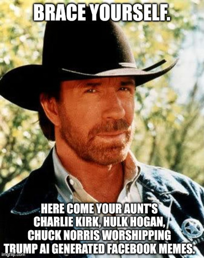As far as I’m concerned, Chuck Norris died in 2006 when Gandalf the Grey and Gandalf the White, Monty Python and the Holy Grail’s black knight, and Benito Mussolini and the Blue Meanie, and Cowboy Curtis and Jambi the Genie, Robocop, The Terminator, Captain Kirk, and Darth Vader, Lo-pan, Superman, every single Power Ranger, Bill S. Preston and Theodore Logan, Spock, The Rock, Doc Ock, and Hulk Hogan all came out of nowhere lightning fast and kicked Chuck Norris in his cowboy ass.