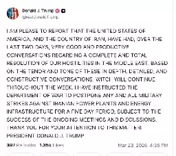 Is this just market manipulation and he’s going to attack Iran soon? Or is he looking for an offramp?