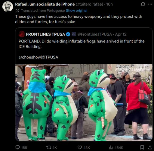 I don’t feel the next to fly there and buy a gun and protest if that’s what it takes to not be a coward. Especially when that definition comes from another perpetually online coward…