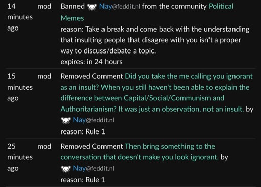 And that’s before you get into the fact that they started the whole argument. With some exceptionally bad-faith idiotic whataboutism. Whether OP deserves it or not, that mod is clearly abusing their powers by provoking a reaction and then jumping on the provocation as an excuse to ban dissenting views.