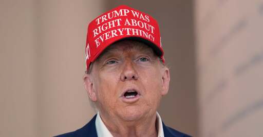 Trump then claimed these citizens of Chicago who are clamoring for military intervention in their city “are wearing red hats, just like this one. But they are wearing red hats. African American ladies, beautiful ladies are saying, ‘Please, President Trump, come to Chicago, please.’”