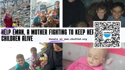 arrow-up14arrow-down1external-link💔 Help Eman, A mother fighting to keep my children alive in 🌿plus-squarechuffed.orgObama's Gaze@lemdro.id to Palestine@lemmy.dbzer0.comEnglish · 2 months agomessage-square0linkfedilink